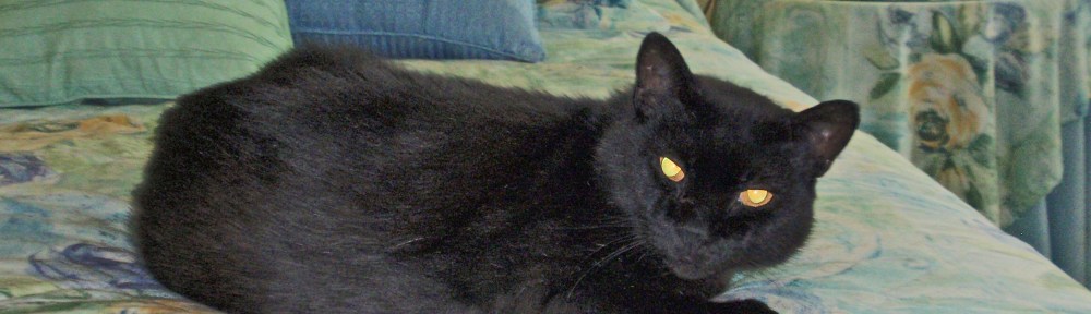 Interrupting nap time perhaps? I love the blues and greens in the background highlighting one gorgeous black cat. Jake ROCKS!