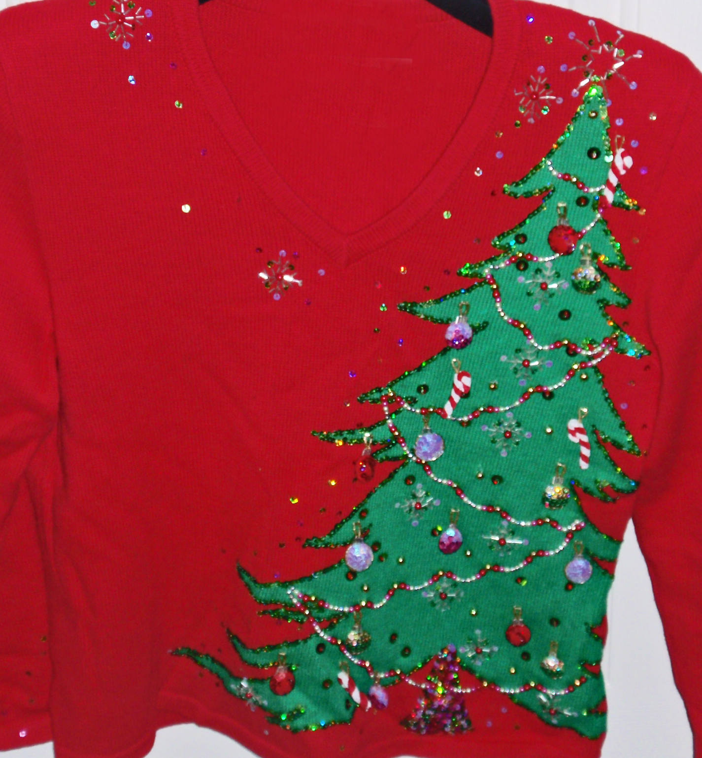 Hahaha . . . aah! I gave all my ugly sweaters to Goodwill when I moved to Florida . . . to give them a chance to win FIRST prize at an Ugly Sweater Party. Now, when I wish to be festive, I wear a bright red sweater over a green top or a heather green sweater over a bright red top. And pin on a tiny Christmas tree.