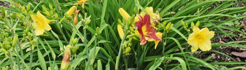 Silly critters – I love day lilies and planted a lot of them when I moved here. The deer ate all the red buds. I never saw them bloom. After 12 years I pulled the red ones out and gave them away. This past week, in the middle of my yellow lily patch there was one red volunteer blooming its heart out. Maybe it is protected by the yellow ones. A bird or squirrel or something must have planted a seed.