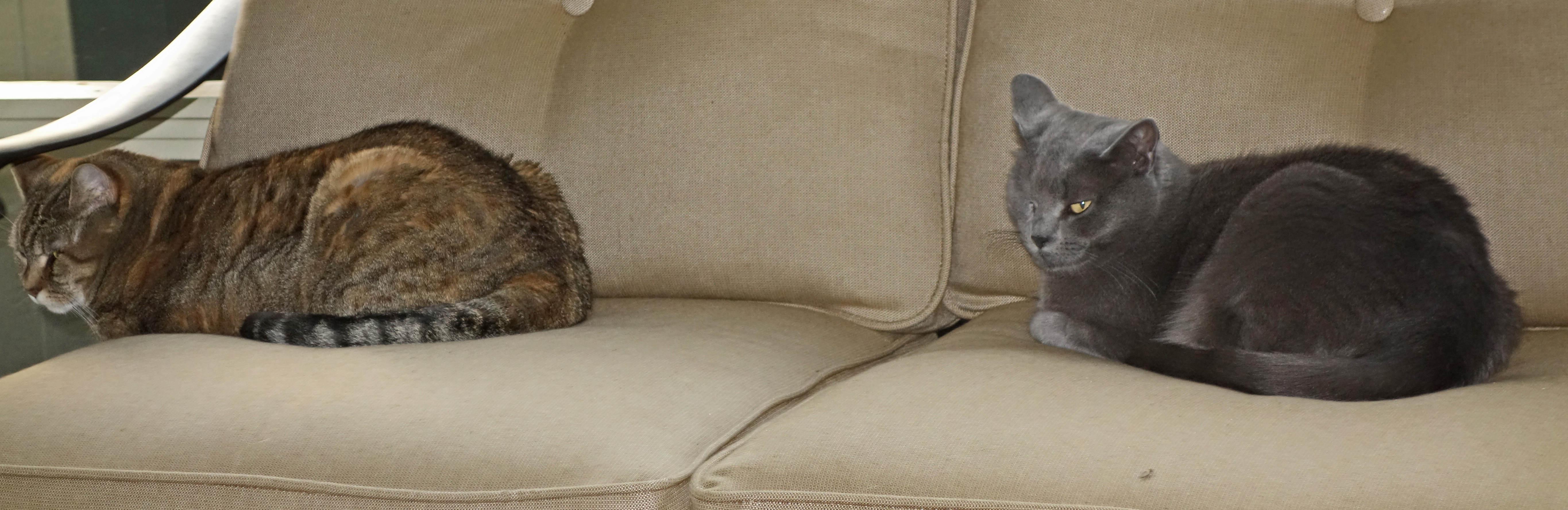 Ah, cats! They teach us how to relax, and help us do so! This week our daughter had her roof redone and their dog exhausted himself barking at the workers to finish quickly and get out of his space!!!
