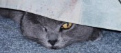 I should have known that because of issues my friend Carol has written about on Facebook. Especially problematic is any time a contractor comes to the house – they must be locked up in a room and they make a commotion since they don’t have the entire house to roam around in and in her words “bellow” the entire time she are in there. One of them got lost in the furnace room behind some Rubbermaid tubs once – Carol looked there but that cat was hiding in some little corner. She was frantic.