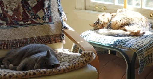 Author’s note: We hosted a family reunion this past weekend. The cats were not happy about the change in routine, sticky people and delays in dinner. Here are their thoughts.