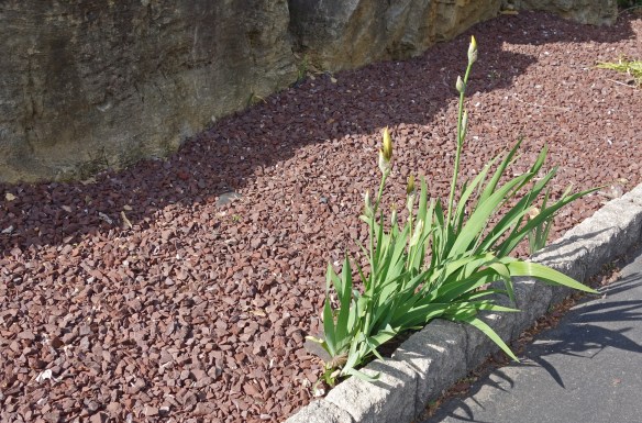 I took this picture this week. I admire those plucky irises. We put landscaping fabric down under the stones so it had to work to grow. It’s also going to bloom. I will dig those out and plant them in my iris bed. Any flower that is tenacious enough to bloom through that adversity, deserves a good life.