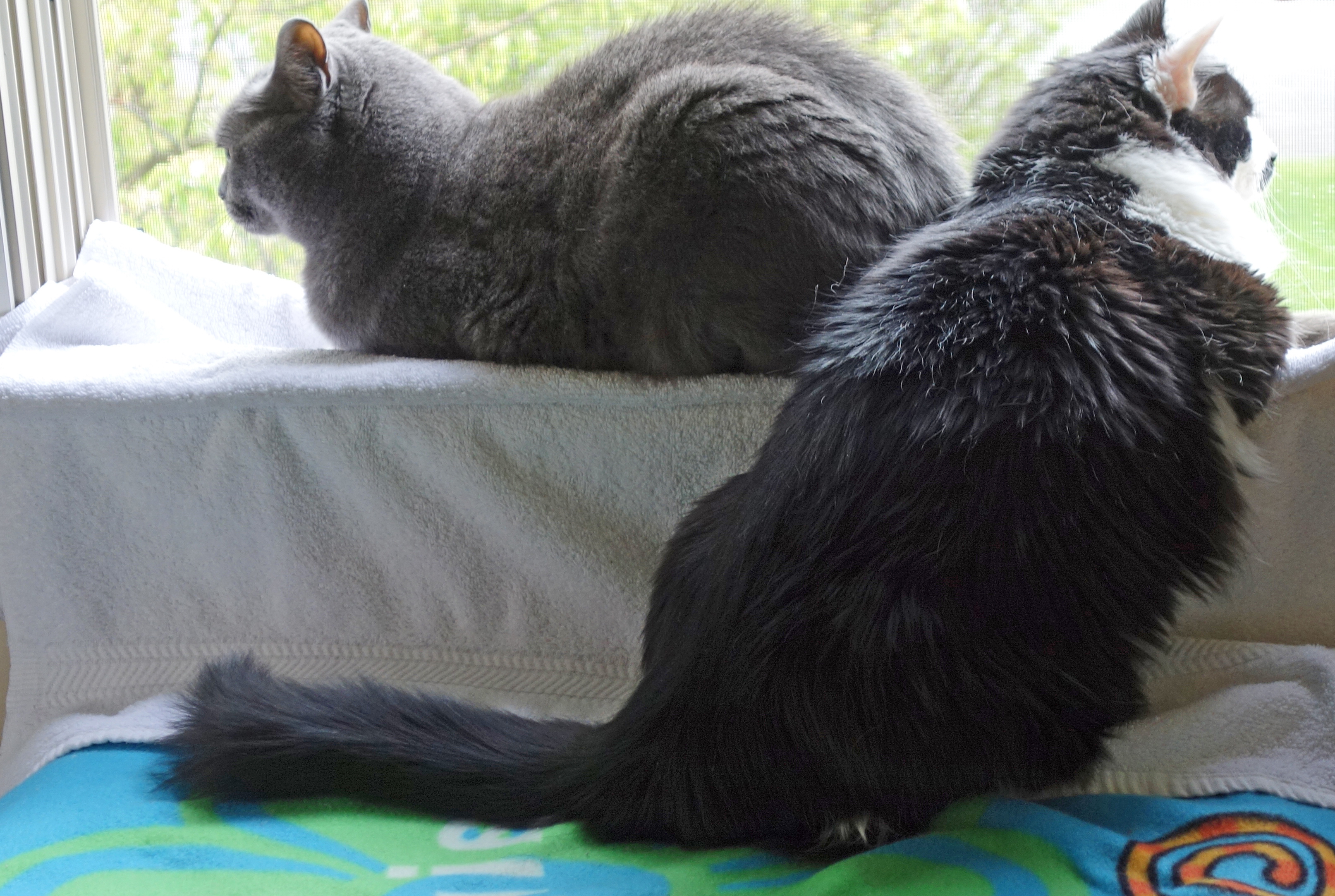Gracie is enjoying her spot too. She rarely sits on a windowsill so this is new for her. There must be something going on inside that’s more interesting than birds singing. Maybe it’s the dinnertime call.