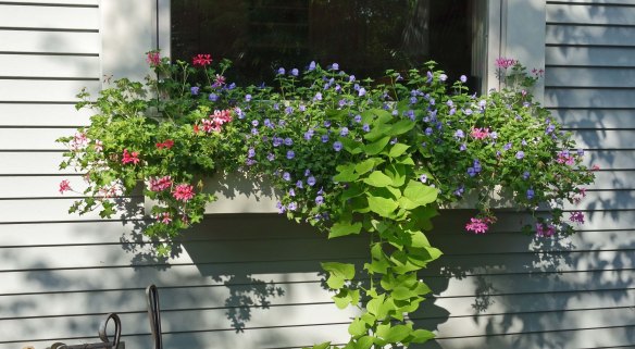 It’s a good year for the window box. It’s at a weird location as one side gets more sun than the other so I have to be careful with flowers. Not quite sunny enough for all geraniums, yet too sunny for some shade flowers. With a mix it’s hard to tell and throw a sweet potato vine in to melt it all together and you’re golden.