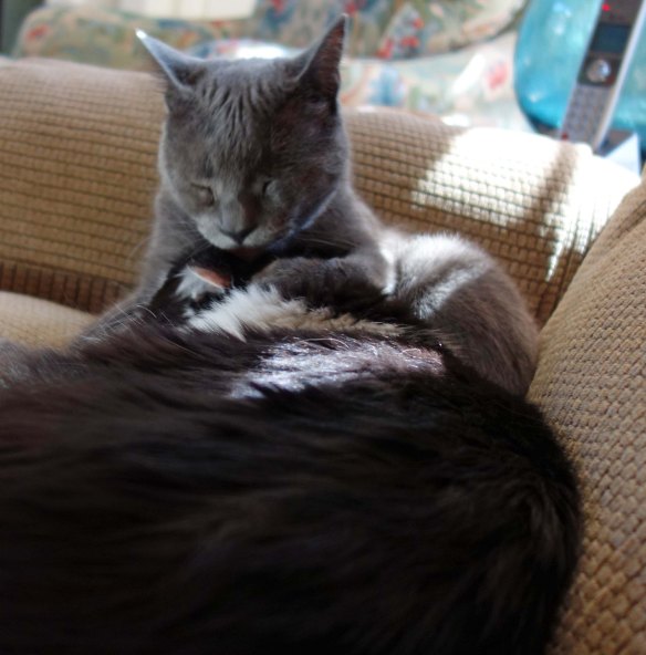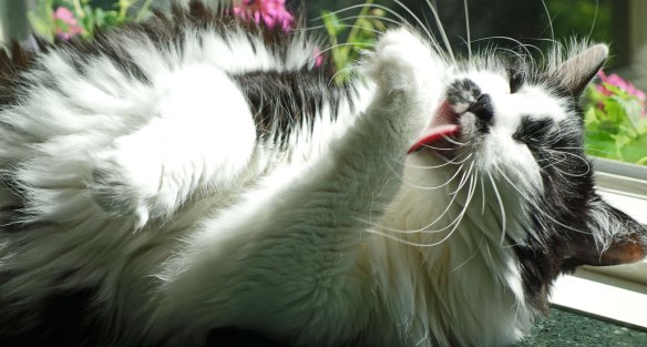 Cats washing each other is always adorable. With just the one cat now, we don’t see that anymore.