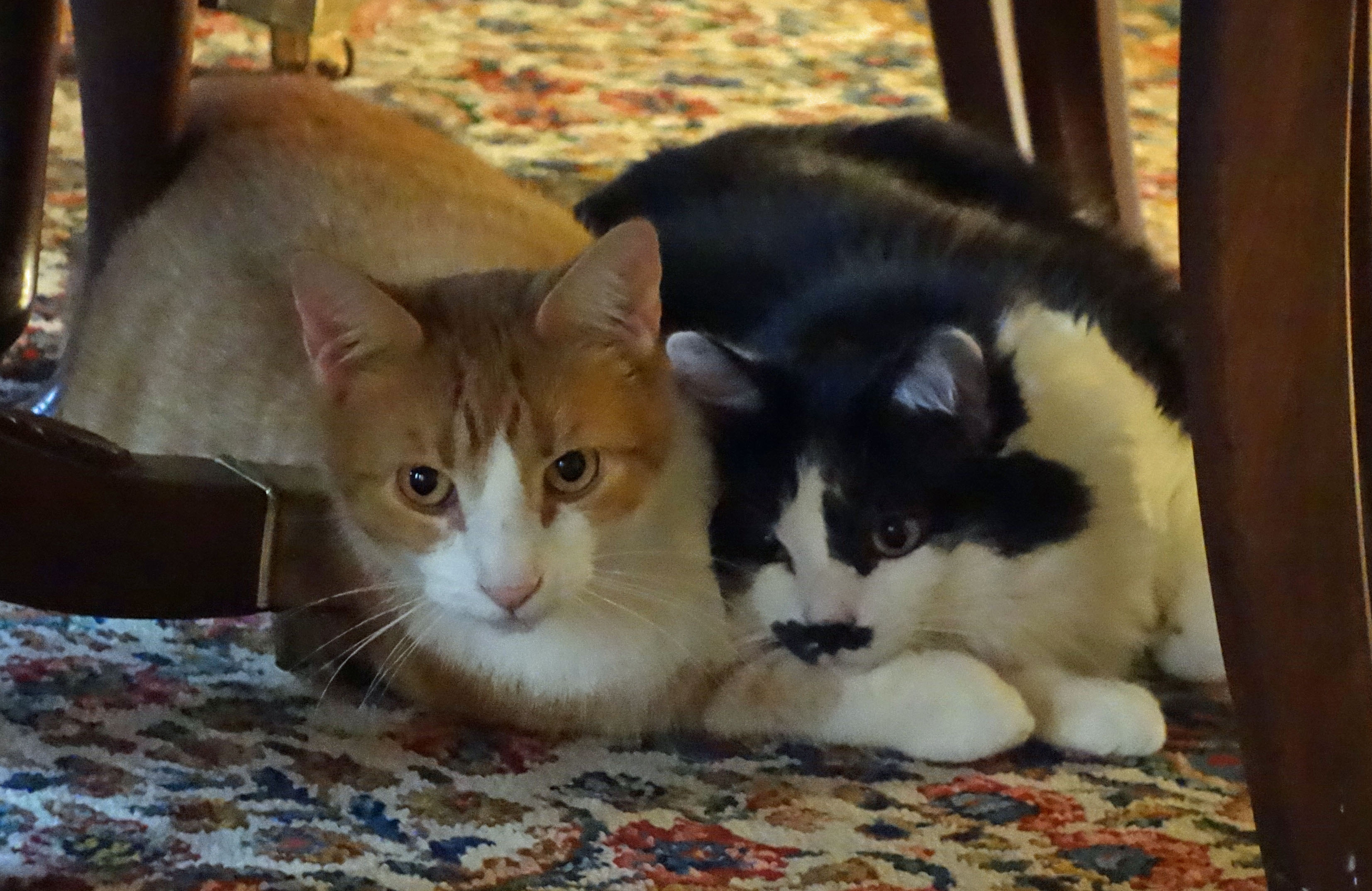 Quite the expressive faces on your Sassy cats today, Kate. Personal space and boundaries…..ha, ha. Oh, my gosh………I think I may have a crush on Gus/Kenny/Stud muffin. Mr. Personality! Welcome to this good gig.🙂