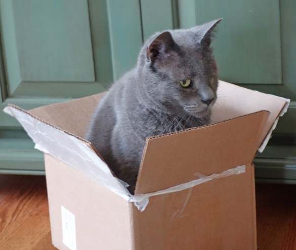 Gracie here. Tim off was great but no one does the news like I do. The peeps got me a new throne. What do you think? It’s Gracie sized! I have to be careful. Boxes don’t last long here. The peeps call them “indaway” or (gasp!) “trash!”