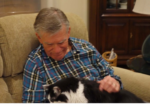 We are still in kitchen chaos and I have to sleep somewhere safe during the day. You never know when a stranger will come in. Here is a picture of me and Pops. The lady peep wasn’t fast enough. She never is but you get the idea. He loves me.