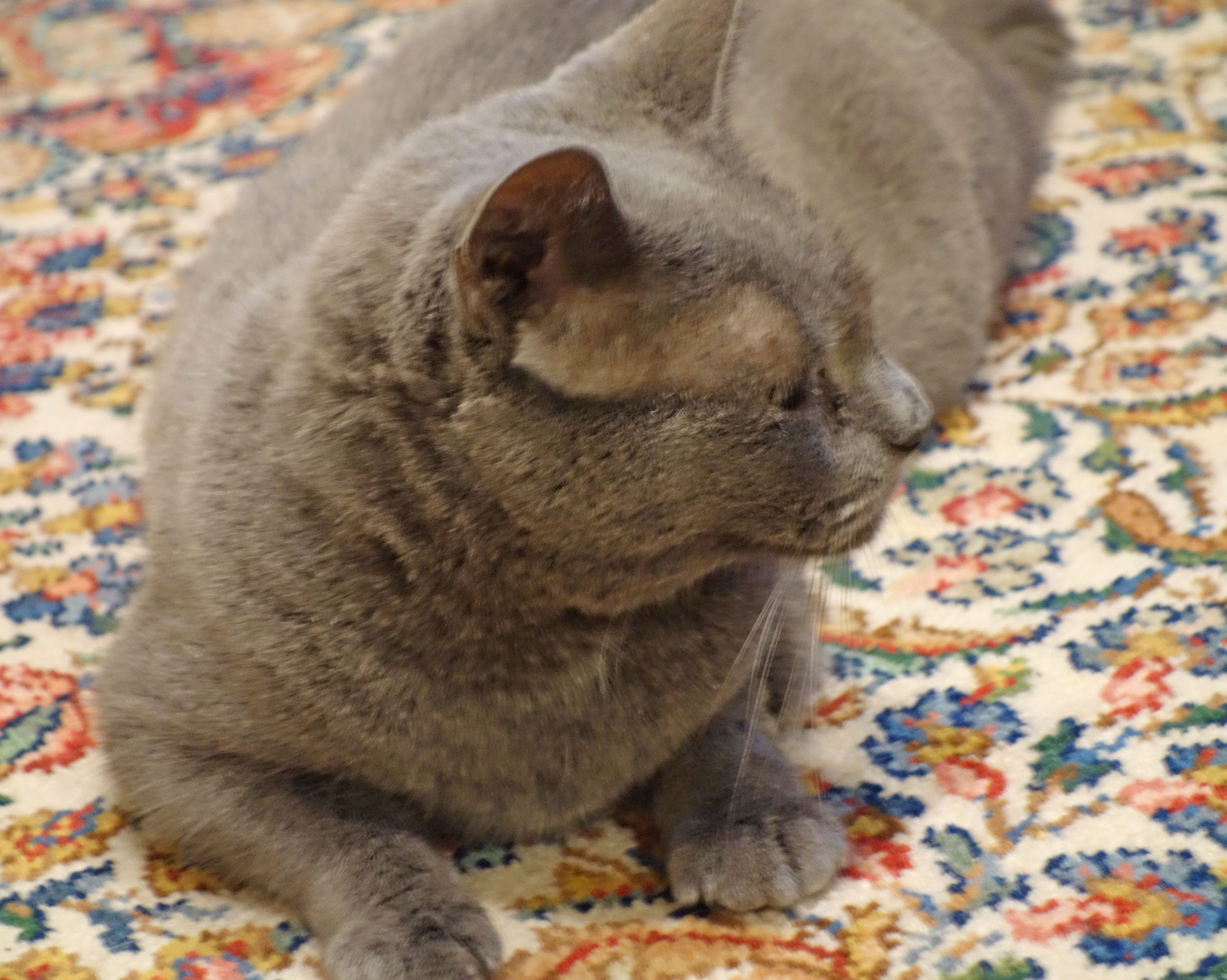 The other cats have been different. No other word for it. They will not pester her when she eats (and she eats more often than they do so they just sit and watch in envy). Even Sasha, who will push any cat out of the way with her voluptuous hips, will sit and wait until she’s done. Any bets on how long this politeness will last? I’m thinking maybe this weekend it goes out the window.