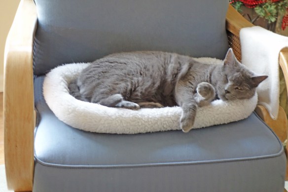 Here is Morgan in one of her favorite sleeping spots. That’s her blankie hanging over the arm of the chair.
