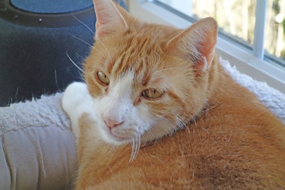 I get a mild laxative in my breakfast to help with the hairballs. Most days I eat it just fine. Some days it doesn’t suit me and the peep has to watch over my food. This week, it got away from the peep and Gus got a dose of laxative. Won’t hurt him and there were no “adverse effects” in the litter box so all is good. Never a dull moment in a multi-cat house.