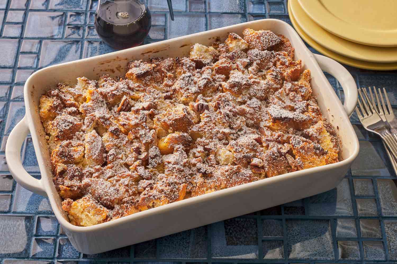 Since French Toast casserole is essentially bread pudding, I leave out the sugar too. Although, I sometimes sprinkle the top with cinnamon sugar for a nice crunchy top. I don’t like syrup which is almost heresy among my friends and family. I believe I had a recipe with cubes of cream cheese in it that turned out pretty nice.