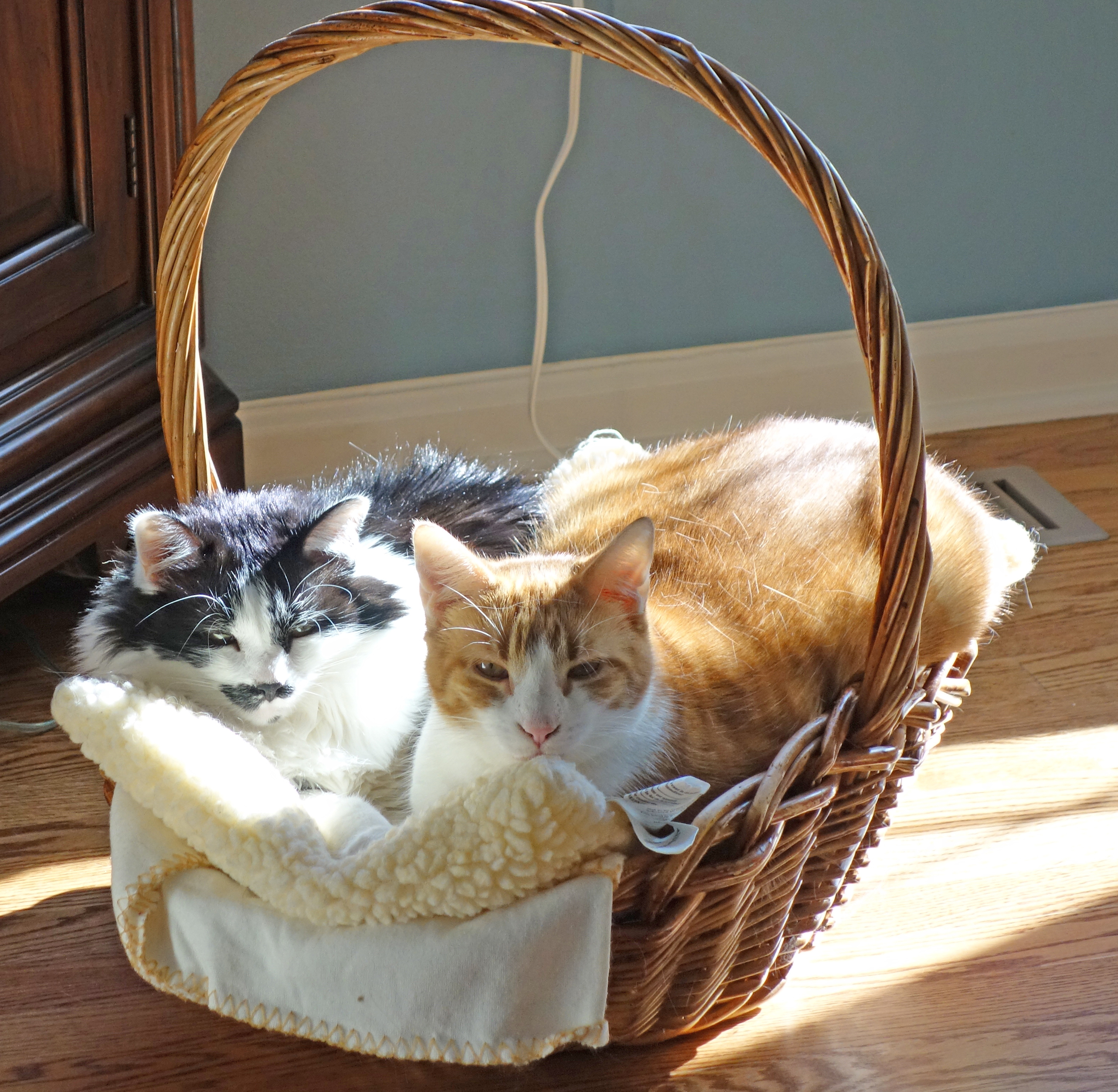 You’re lucky you are the only cat chowing down on rotisserie chicken Gracie. I like the photo of Gus and Sasha tucked into the heated basket with that sun filtering onto them. They look to be the picture of contentment.