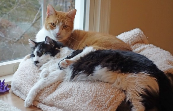 They snuggle a lot. It’s like cat porno. Sometimes I’m embarrassed to come into the room. They give me the “nothing going on here move along” look.