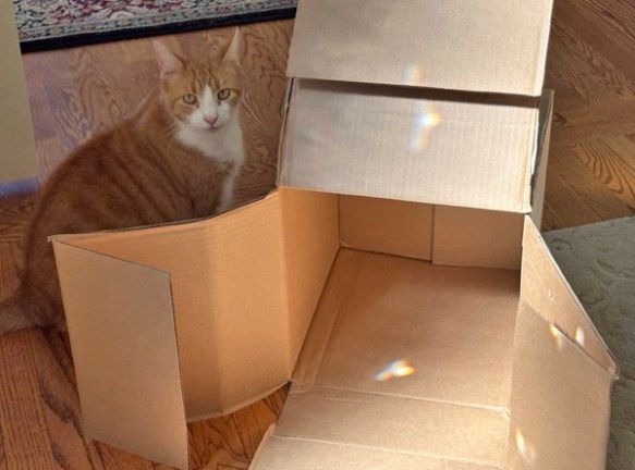 I see those sunspots inside the box must have been quite a draw too, not like catnip, but nice to curl up in! Gus is color coordinated to the floor, no wonder he wanted to pose there!