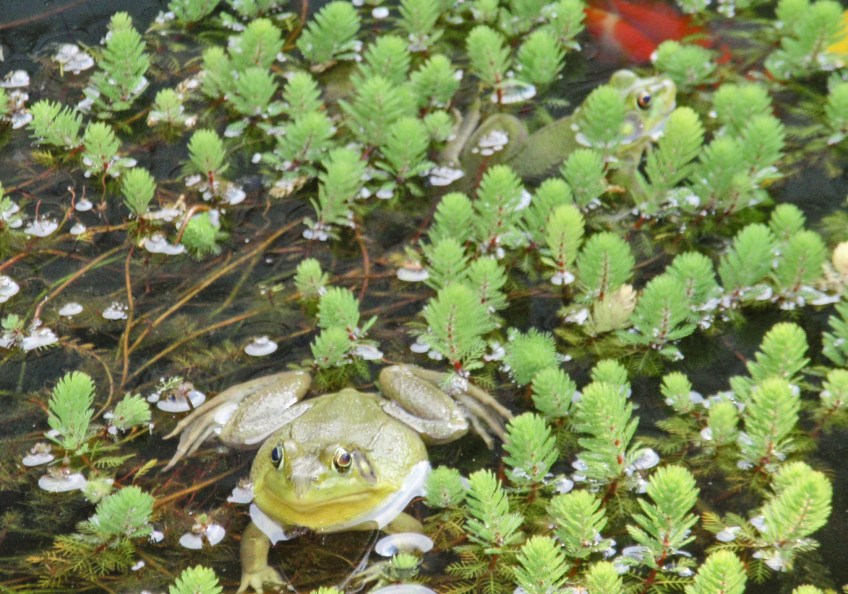 OLYMPUS DIGITAL CAMERA Published July 12, 2014 at 2021 × 1418 in OLYMPUS DIGITAL CAMERA The two frogs were supervising! frogs in parrot’s feather